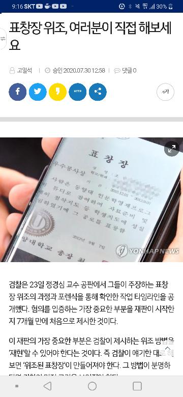 동양대 '총장 직인 파일'..이리도 사연 많은 증거물 지난달 4월 8일 서울중앙지법, 정경심 교수에 대한 9차 공판, 동양대 교원인사팀장에 대한 신문 과정에서 이런 말이 나온다. 검사 - 언론에서 갑자기 정경심이 압수수색을 하기 전에 동양대에서 가져간 업무용 PC 임의제출했는데 거기에 동양대 총장 직인파일 발견됐다는 기사 본 적 있습니까?증인 - 본 적 있습니다.검사 - 사실은 이 보도내용과는 다르게 이 PC에는 총장 직인 발견된 건 아니었는데. 보도내용 진위는 알 수 없었지요?증인 - 네 검찰 측에 이어 나선 변호인. 역시 같은 언론 보도를 언급한다. 변호인 - ...마찬가지로 피고인 컴퓨터에서 직인 파일이 나왔다니까 그 과정을 물은 거죠?증인 - 네 본인이 물었죠.변호인 - 그런데 오보였고 그 컴퓨터에선 직인 파일이 안 나온 건 아시죠?증인 - 그건 모릅니다. 모두 같은 보도를 인용한 증인 신문인데, 이 보도는 왜 검찰과 변호인 측에 다 중요했을까? 다음은 이에 해당하는 SBS 2019년 9월 7일 보도의 앵커멘트 부분. 이 부분에서 저희가 단독으로 취재를 한 것이 있습니다. 정경심 교수가 사무실에서 가지고 나왔다가 나중에 검찰에 제출을 한 컴퓨터가 있었습니다. 이 안에서 총장 도장, 직인을 컴퓨터 사진 파일로 만들어서 갖고 있던 게 발견된 것으로 확인됐습니다. 당시 관련 보도가 나왔을 당시 사실관계를 확인하려는 기자들의 추가 취재에 검찰은 '부정적'인 태도를 보였다고 한다. 사실이라면 "확인해줄 수 없다" 정도의 반응을 보일 법도 한 검찰이 이 보도에서만큼은 "따라가지 않는 게 좋겠다"는 분위기가 강했다고 한다. 즉 정경심 교수가 표창장을 위조한 혐의에 결정적 증거가 될 수 있는 '총장 직인 파일'의 존재에 대해 당시까지 검찰은 확증적인 증거를 갖지 못했던 것으로 보인다. KBS 취재 결과를 종합하면 검찰이 9월 7일 해당 보도가 나갈 때까지 확보했던 증거는 9월 3일 김경록 씨가 자신의 차량 트렁크에 보관하고 있던 정경심 교수 사무실 컴퓨터에서 나온 것뿐인데, '정경심 교수 아들의 상장 이미지 파일'과 '어학교육원장 직인 파일' 정도다. 때문에 9월 6일 조국 전 법무부 장관에 대한 인사청문회 당일 저녁 부인인 정경심 교수를 기소할 당시에는 이 '직인 파일'을 확보한 상태에서 기소가 이뤄지지 못했던 탓에 "성명불상자 등과 공모해 2012년 9월 7일 동양대학교에서 (중략) 학교 총장의 직인을 임의로 날인했다"는 정도의 불확정적인 표현만이 들어갔을 뿐이다. 검찰이 실제 '동양대 총장 직인 파일'을 발견한 것은 언론 보도가 나간 사흘 뒤인 9월 10일이다. 언론 보도를 보고 '총장 직인 파일'이 들어있는 컴퓨터가 있다는 것을 알았는지, 아니면 우연히 그 후 결정적인 제보가 들어왔는지 알 수 없으나, 검찰은 이날 동양대 강사 휴게실 한쪽에 쳐박혀 있던 먼지 쌓인 컴퓨터 안에서 '조국 파일'이라는 폴더를 찾아냄으로써 결정적 증거를 확보하기에 이른다. 강사 휴게실에서 발견된 컴퓨터 안에는 '아들 상장 사진 파일'과 함께 '아들 상장에서 총장 직인 부분만 잘라낸 총장 직인 파일'이 들어 있었고, 이 증거는 고스란히 이후 추가 기소에서 혐의를 구체화하는데 쓰이게 된다. 검찰의 이후 추가 기소 당시 공소장을 보자. "딸과 공모해 2013년 6월 경 주거지에서 아들 상장을 스캔한 후 이미지 프로그램을 이용해 총장 직인 부분만을 캡처 프로그램으로 오려내는 방법으로 '총장님 직인’제목의 파일을 만들었다." 참 탈도 많고 사연도 많은 증거물, '총장 직인 파일'이다. 검찰이 확보하기도 전에 언론 보도를 통해 세상에 존재를 알렸고, 검찰은 마치 그 존재를 알았던 것처럼 보도 며칠 뒤 동양대 한쪽 구석에서 발견해 추가 기소의 '결정적 증거'로 삼았다. 여기에 동양대 교원인사팀장이 총장이 수여하는 상은 모두 '인주'로 직접 직인을 찍는다는 증언까지 법정에서 한 탓에 어떻게 봐도 '정경심 교수'에게 불리할 수밖에 없는 증거다. 하지만 이 사연 많은 증거물은 아직도 한 단계의 복잡함을 또 남겨 놓고 있다. 즉 확보과정에서의 '적법성 문제'다. 하늘의 도우심이 있었는지 강사 휴게실에서 직인 파일이 있는 컴퓨터를 찾아냈지만, 검찰이 압수수색 영장을 발부 받아 가지 않은 탓에 '임의 제출'이라는 형식으로 컴퓨터를 받아올 수밖에 없었다. 사실 검찰이 '총장 직인 파일' 존재 자체를 정확히 알고 해당일 동양대에 갔다면 아마 미리 영장을 발부받아 증거 확보에 나섰겠지만, 그렇지 못한 걸로 봤을 때 검찰도 정확한 정보를 가진 상태는 아니었던 듯하다. 하지만 우연이든 필연이든 '결정적 증거'가 눈앞에 나타난 상황에서 검찰은 학교 측 관계자의 동의 아래 임의제출 형식으로 컴퓨터를 확보했지만, 과연 이 과정이 적법하느냐는 논란은 남아 있는 상태다. 우리 법원이 갈수록 수사 과정의 정당성을 요구하는 경향을 띠는 만큼, 만일 재판부가 이 컴퓨터를 확보한 과정을 문제 삼아 증거 능력을 인정하지 않는다면, 동양대 총장 직인이 찍힌 정경심 교수의 딸 조민 씨의 상과 관련된 기소 혐의 자체는 원천 무효가 될 가능성도 배제할 수 없다. 검찰이 수사를 진행하다 보면 이른바 '핵심 증거