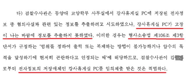 그리고 동양대에서 압수했다는 PC의 증거능력 문제.