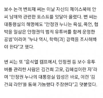 [정치·경제·사회] 변희재 “안정권 친누나 채용, 김건희 고모 통했다”
