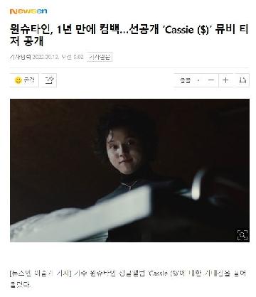 [TV·연예] 원슈타인, 1년 만에 컴백…선공개 ‘Cassie ($)’ 뮤비 티저 공개