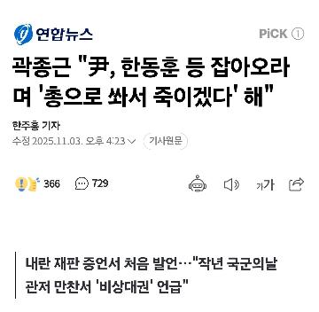 [이슈] 곽종근, 내란재판서 "尹, 한동훈 총으로 쏴서 죽이겠다"…한덕수...