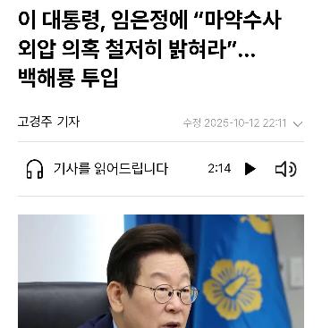 李, ‘마약수사 외압 의혹’ 엄정 수사...백해룡 등 보강 지시