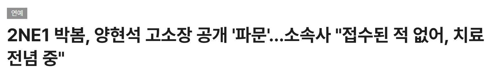 [공식] 박봄 측 "YG 양현석 고소NO,2NE1 활동 정산 완료…치료 전념할것...