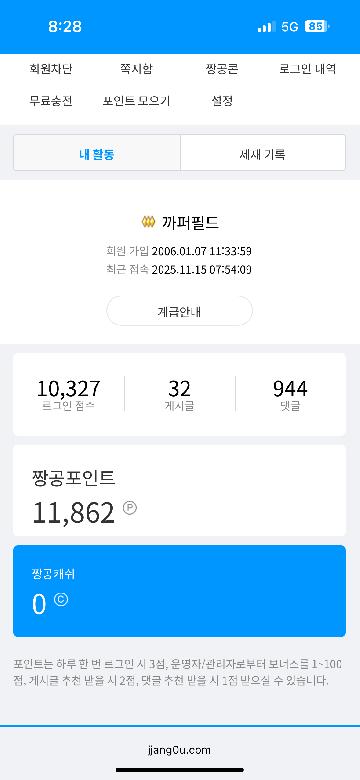 시작은 와레즈니 낭만이라 치부할 순 없겠습니다만96년도 대학에 가던 시절부터 드나들다 2003년 1월에 가입을 했나보군요.짱공유는 고단한 저의 20대, 30대, 40대를 채워준 공간이었습니다.댓글은 비정기적으로 달았지만 게시글은 9개보다 많은 거 같은데 확인하려니 번거롭군요. 강릉무장공비, IMF, 연평해전, 새천년, 2002 월드컵, 코로나 등등 많은 일들이 있었군요. 짱공유에서 가장 기억에 남는건 2020년에 화석이벤트 응모해서 당첨되었을 때와 첫째 딸을 놓고 딸바로로 자랑할 때 였습니다.화석 이벤트 트라이탄 보틀 아직도 쓰고 있습니다 ㅎㅎㅎ 언제부턴가 저의 인터넷 라이프의 해우소였던 공간이 사라진다니사업이 힘든 요즘 오래된 친구를 먼저 보내는 느낌입니다.집사람을 만나게 되었던 전기도 없고 물도 없고 통신도 불량하던 인도네시아 보르네섬 섬 오지에서도 느리게 느리게 접속했던 짱공유인데 이제 사라진다니 많이 아쉽습니다. 12월 초에 둘째인 아들 녀석이 나올 예정입니다.아들녀석 자랑글이 짱공유에서 쓸 마지막 글이 되겠군요. 얼마 남지 않은 짱공유 라이프입니다. 화석이벤트때에도 회원님들에게 드렸던 말입니다. 여러분 모두 무탈하게 지극히 평범하고 일상적인 삶들을 사시길 빕니다. JJANG0U BLESS YOU