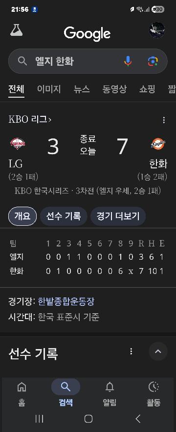 '8회 역전 드라마' 한화, KS 3차전서 LG에 역전승…2패 뒤 반격의 1승(종...